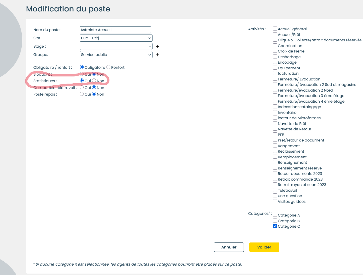afin de ne pas comptabiliser les astreintes 19/20h dans les stats , il vous faut créer cette astreinte comme un poste à part paramétré sans stat (cf.capture d’écran).